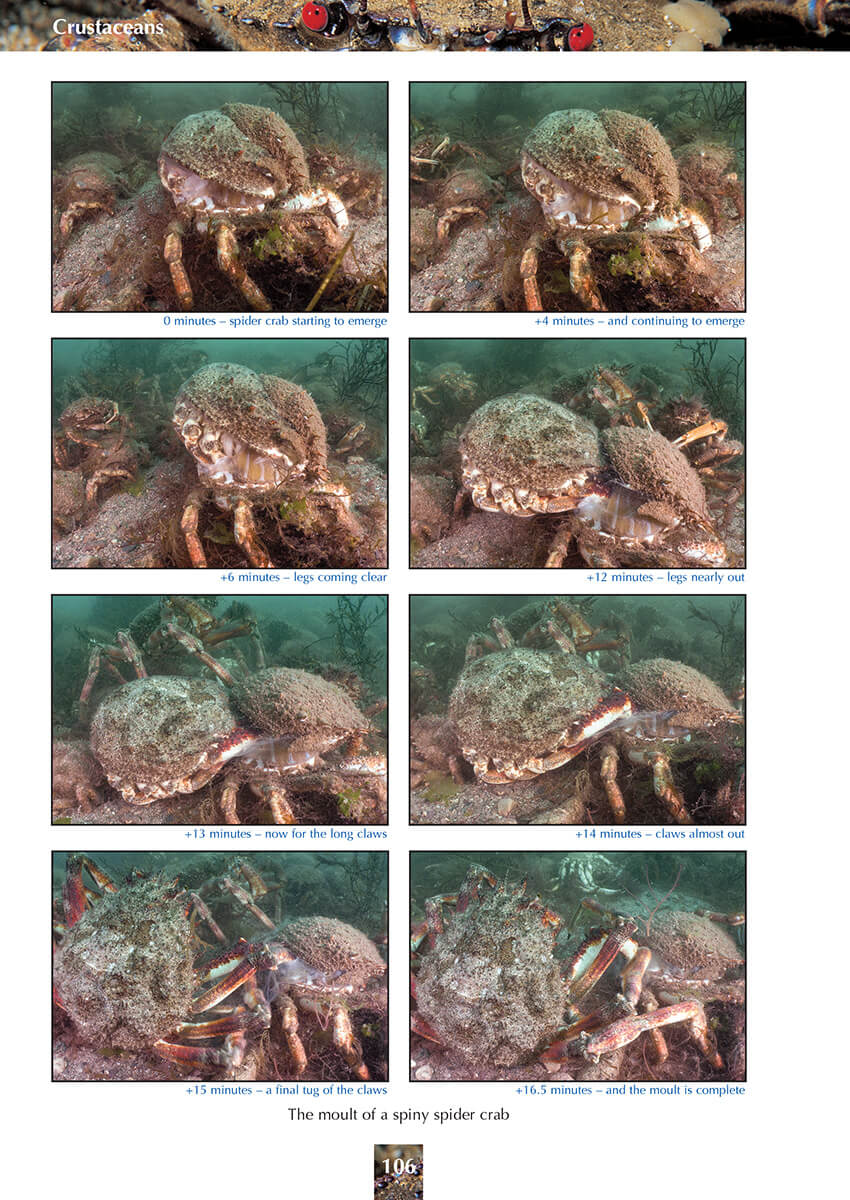 - Unusual action shots of ‘sneaking’ tompot blennies, moulting and decorating crabs, egg-laying cuttlefish, co-operative wrasse, camouflaging sea scorpions, battling limpets, a sea hare defending istelf and many more…